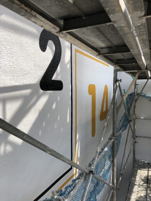 今回は、集合住宅の壁面に棟番号を書いていくというご依頼をいただき施工させて頂きました!