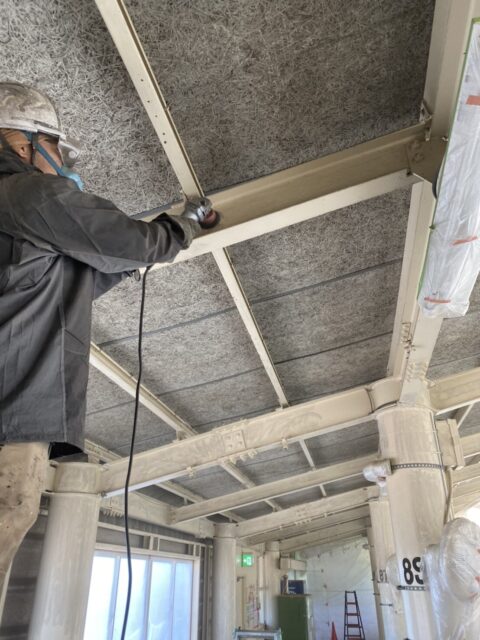養生をしたらグラインダーを使い、剥がれている塗膜、錆などを除去していきます!