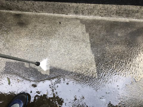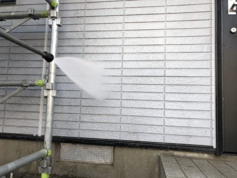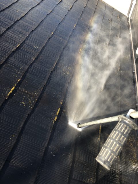 打ち終わったら高圧洗浄です!屋根、壁はもちろん塗装しない箇所もキレイに洗っていきます!