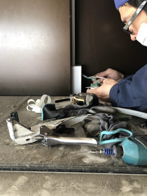 雨が入らない様に周りをコーキングで塞いでいきます!