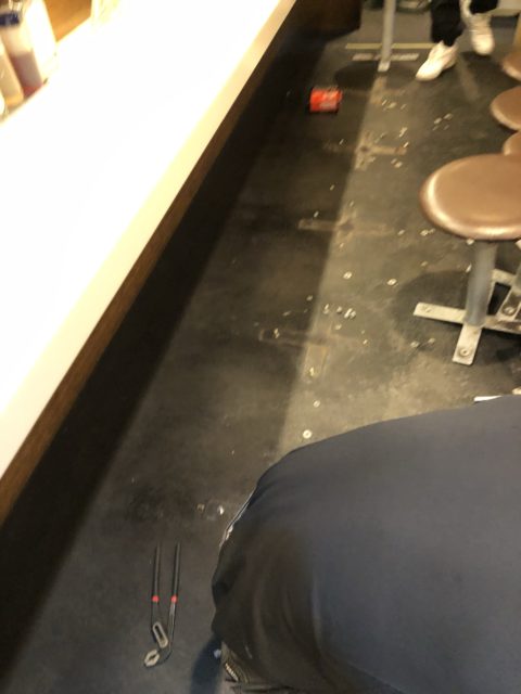 取り外し終わったら、新しく席を設置する場所に印をつけていきます!
