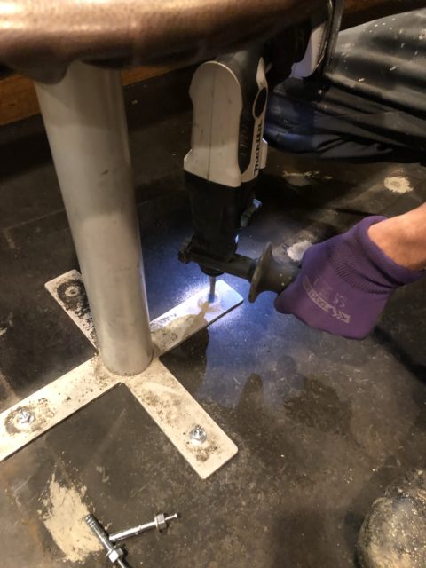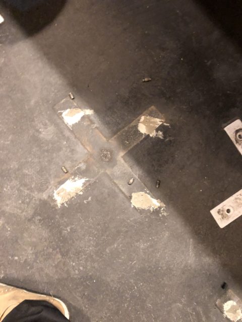 次に、既存の椅子が固定してあった穴を埋めていきます!