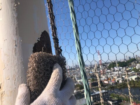 足場を設置できない為、ロープを使ってのぶら下がり作業になります!