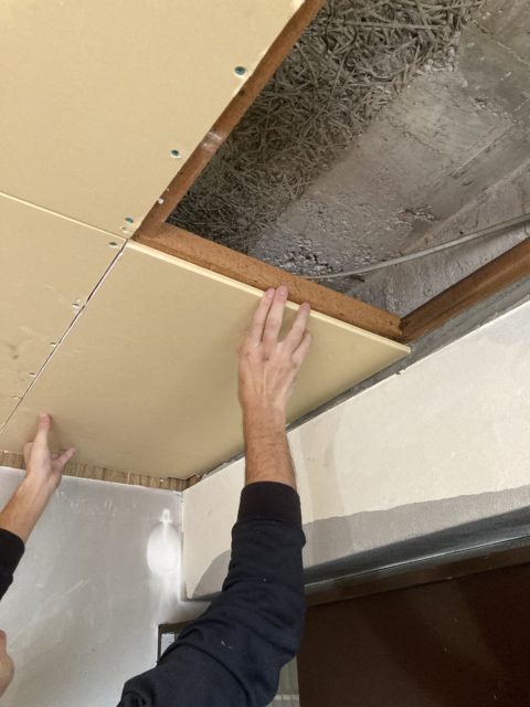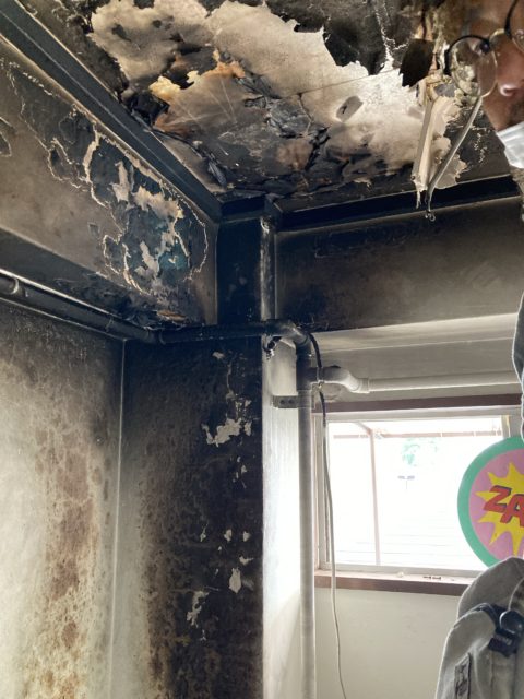 続いては天井が焼けてしまっていたため、天井ボードの交換です。
