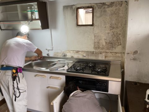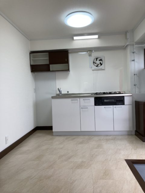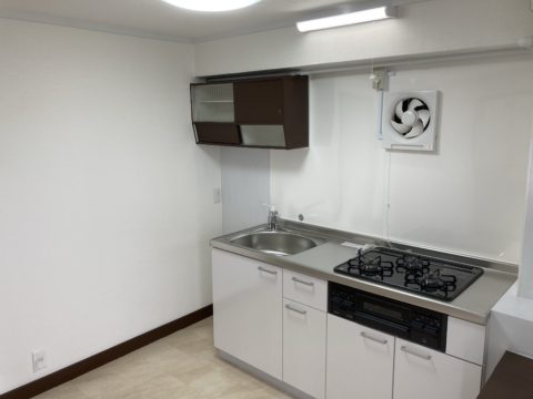 キッチンも置き型から、三口のシステムキッチンに交換。