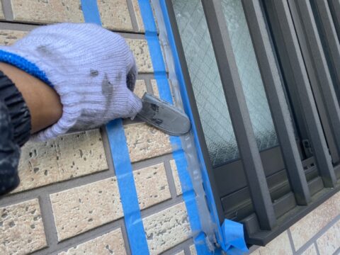 シーリングをガンで打ち込んでそれをヘラでならしていきます!