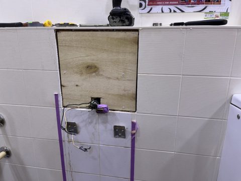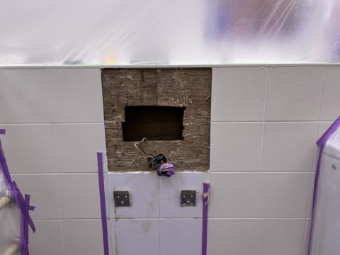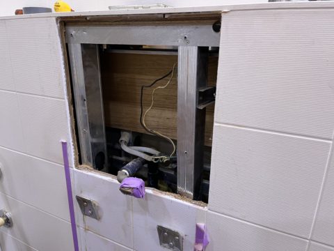 前回、別の水道業者さんが配管の修理をした際にタイルを取りそのままになっていたらしいです!