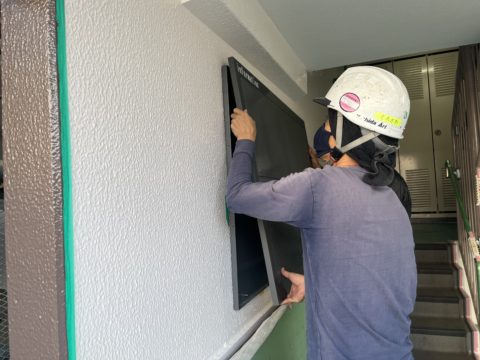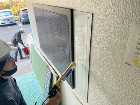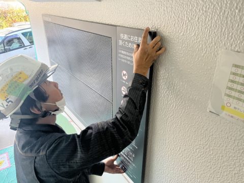 そして新しく取り付ける掲示板の位置決めをしていきます!