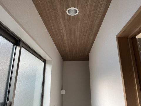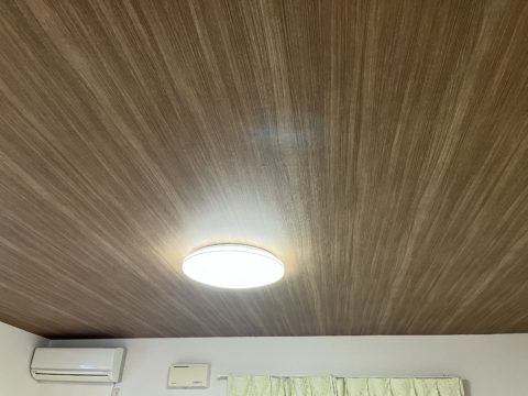 リビングも天井全面同じ木目調にしました!