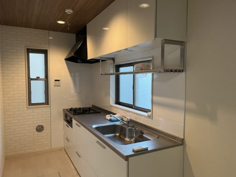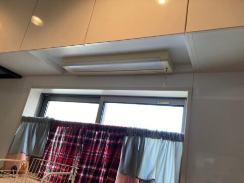 キッチンは照明交換と吊り棚設置!